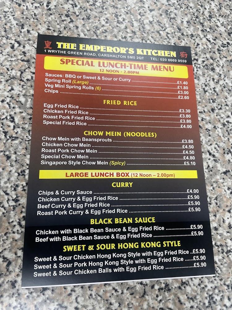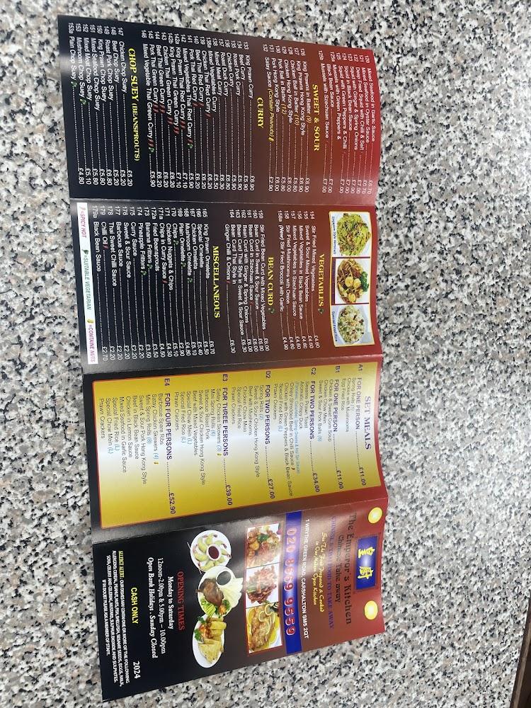 The Emperor's Kitchen finds its home in the heart of Carshalton, making it a convenient stop for locals and visitors alike. The area is known for its friendly community vibe and beautiful green spaces, offering a perfect backdrop for a meal after an afternoon stroll in Carshalton Park. Wrythe Green Road hosts several eateries, but none quite match the charm and flavors offered here. The restaurant's accessibility is commendable, featuring a wheelchair-accessible car park and seating arrangements, making it inclusive for all diners. With its inviting atmosphere and clean environment—especially the sparkling kitchen—The Emperor's Kitchen emphasizes hygiene alongside taste, a rare value that diners deeply appreciate. It thrives on the strengths of cash-only transactions, lending it a nostalgic feel reminiscent of traditional takeaways. Regulars fondly remember the place from their childhood and continue the tradition by bringing their families for a comforting meal.
